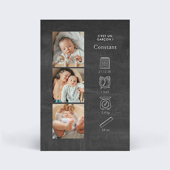 Mélopée, existe pour fille ou garçon lien : Vous êtes les heureux parents du plus beau des garçons ? Ajoutez des images, du texte, bousculez la disposition : Faire part naissance élégants et originaux à personnaliser avec amour, vous allez craquer à coup sûr. La naissance d'un enfant est sûrement l'un des plus beaux cadeaux au monde pour un couple. Vous venez d'apprendre que vous attendez un futur petit garçon ? Nous vous accompagnons dans ces moments de bonheur depuis 2013. Cela reste le meilleur moyen de communiquer votre bonheur. Faire part naissance spécial garçon ou modèle existant en version fille ou garçon. Choisissez dans notre catalogue de faire part pour petit garçon le modèle qui vous correspond. De la découverte de votre grossesse jusqu'à l'arrivée de. Vous avez envie de l'annoncer à tout le monde ! Votre mignon petit bonhomme à vu le jour, voici des idées de cartes pour annoncer sa naissance.