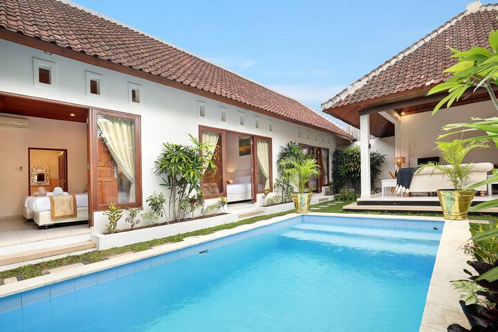 La villa charmante est située à deux minutes à pied de la plage et du casino.
